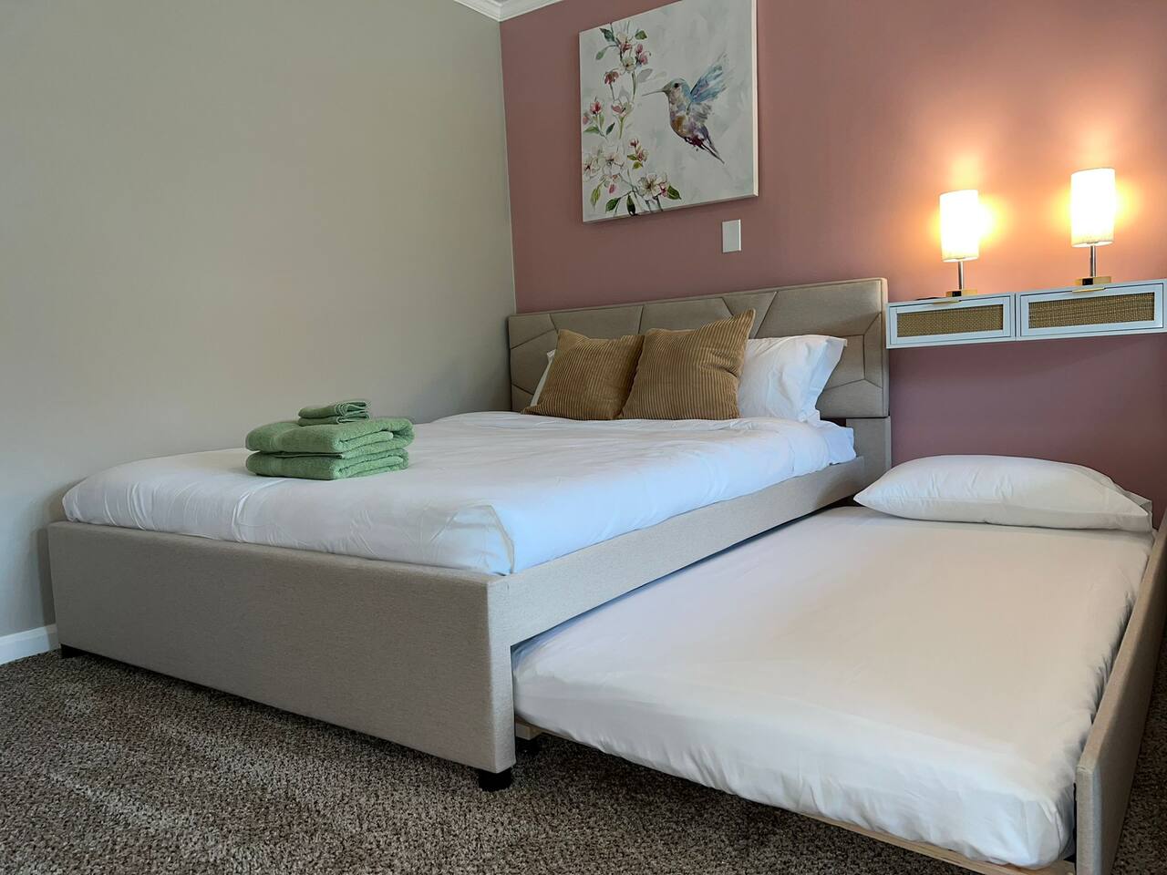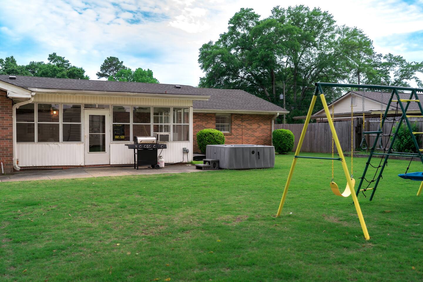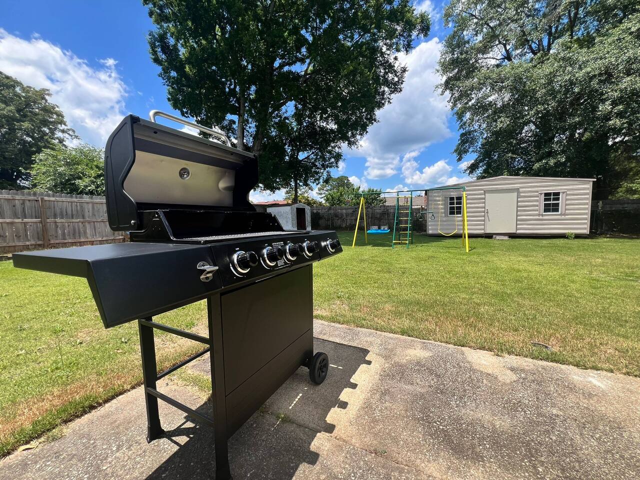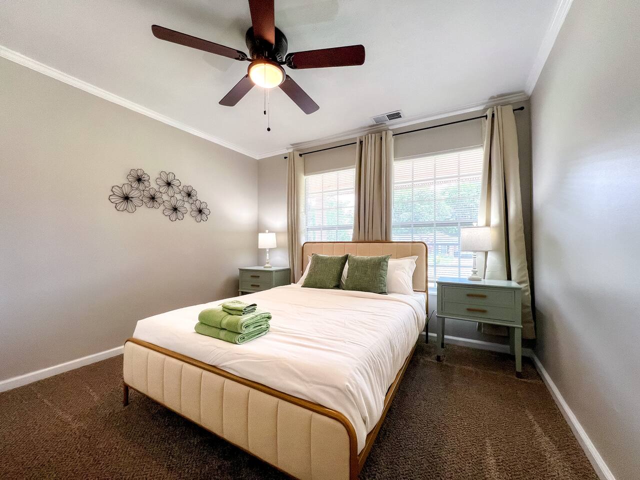 <b>Welcome to the Green Hummingbird</b> - your spacious, single-story Columbus oasis thoughtfully designed for relaxation, fun, and convenience! With just 1-2 steps to enter, accessibility and comfort come together seamlessly. 🌟 <b>Highlights of Your Stay:</b> 📍 <b>Prime Location:</b> Ideally situated minutes from Fort Benning, restaurants, shopping, and local attractions like the Chattahoochee River Rafting, the Green Hummingbird blends tranquility with unbeatable convenience, making it the ideal base for military graduations, family reunions, and exploring Columbus. 🌿 <b>Backyard Bliss:</b> Enjoy our fully fenced backyard featuring a vibrant children's playset, perfect for endless adventures. Grill up delicious meals in the BBQ area or relax and unwind in the bubbling hot tub under the stars. 🎱 <b>Sunroom Fun Zone:</b> Step into our sun-drenched game room boasting panoramic views of the lush backyard. Here, laughter fills the air with lively pool table matches and exciting arcade competitions and a variety of board games - ideal for guests of all ages. 🏡 <b>Open-Concept Living:</b> Step inside to a beautifully designed open space connecting the kitchen, dining room, and living area—perfect for socializing, family gatherings, and creating lasting memories together. 🍳 <b>Gourmet Kitchen Comfort:</b> Our fully equipped kitchen is your culinary playground, featuring modern appliances including a stove, oven, refrigerator, microwave, and dishwasher. Delight in complimentary coffee and tea or whip up smoothies with the provided blender. Everything you need - from cookware to pantry basics- is thoughtfully provided for memorable meals. 🍽️ <b>Dining Delight:</b> Gather around the spacious dining table comfortably seating up to 8 guests- perfect for sharing delicious meals, playing board games, or planning adventures together. 🛏️ <b>Restful Retreats:</b> Our home comfortably sleeps up to 16 guests across five inviting bedrooms: <b>Bedroom 1</b>: King master suite with private en-suite bathroom and own TV <b>Bedroom 2</b>: Cozy queen bed for restful sleep <b>Bedroom 3</b>: Quiet queen bedroom, perfect for relaxation <b>Bedroom 4</b>: Versatile Double Queen Trundle room accommodating up to 6. <b>Bedroom 5:</b> Spacious Double Queen room adjacent to the kitchen 🛁 <b>Refreshing Bathrooms:</b> Two conveniently located bathrooms—including a serene, spa-inspired master bath—ensure a refreshing and stress-free experience. 📺 <b>Comfortable Living Area:</b> Gather in our stylish yet cozy living room featuring plush seating, warm decor, abundant natural light, and a 65" Smart HDTV—perfect for movie nights and downtime with family and friends. ✨ We're committed to ensuring your stay is comfortable, enjoyable, and truly memorable. We can't wait to welcome you to Green Hummingbird!