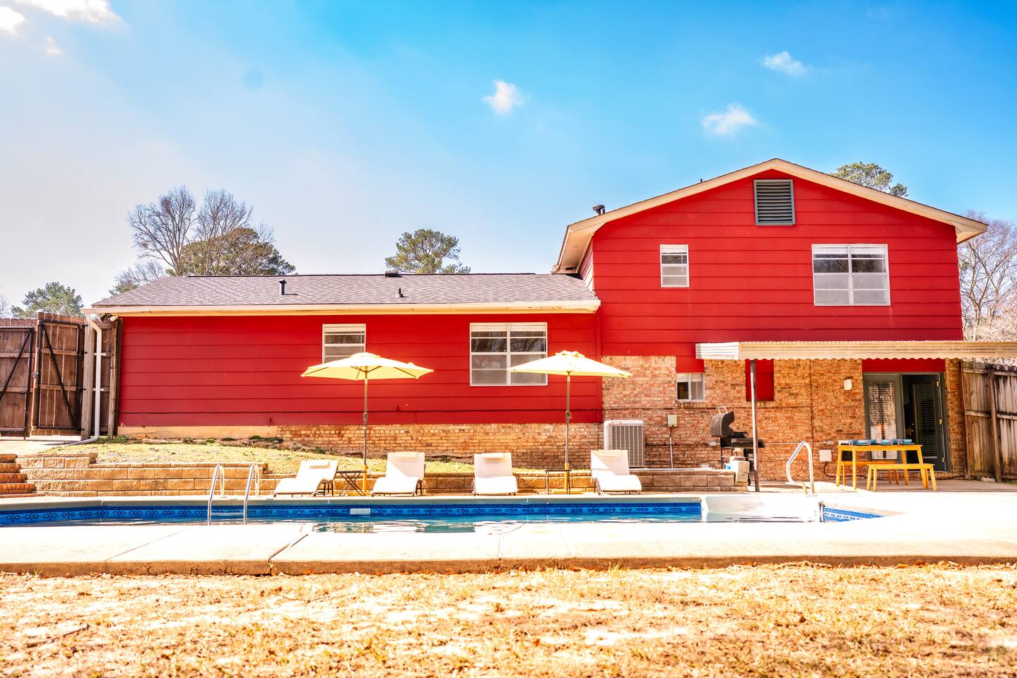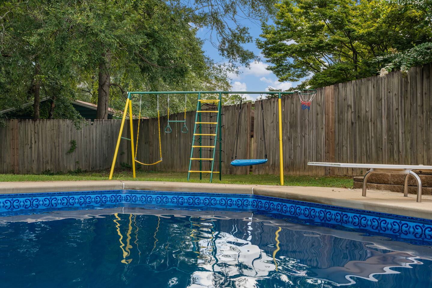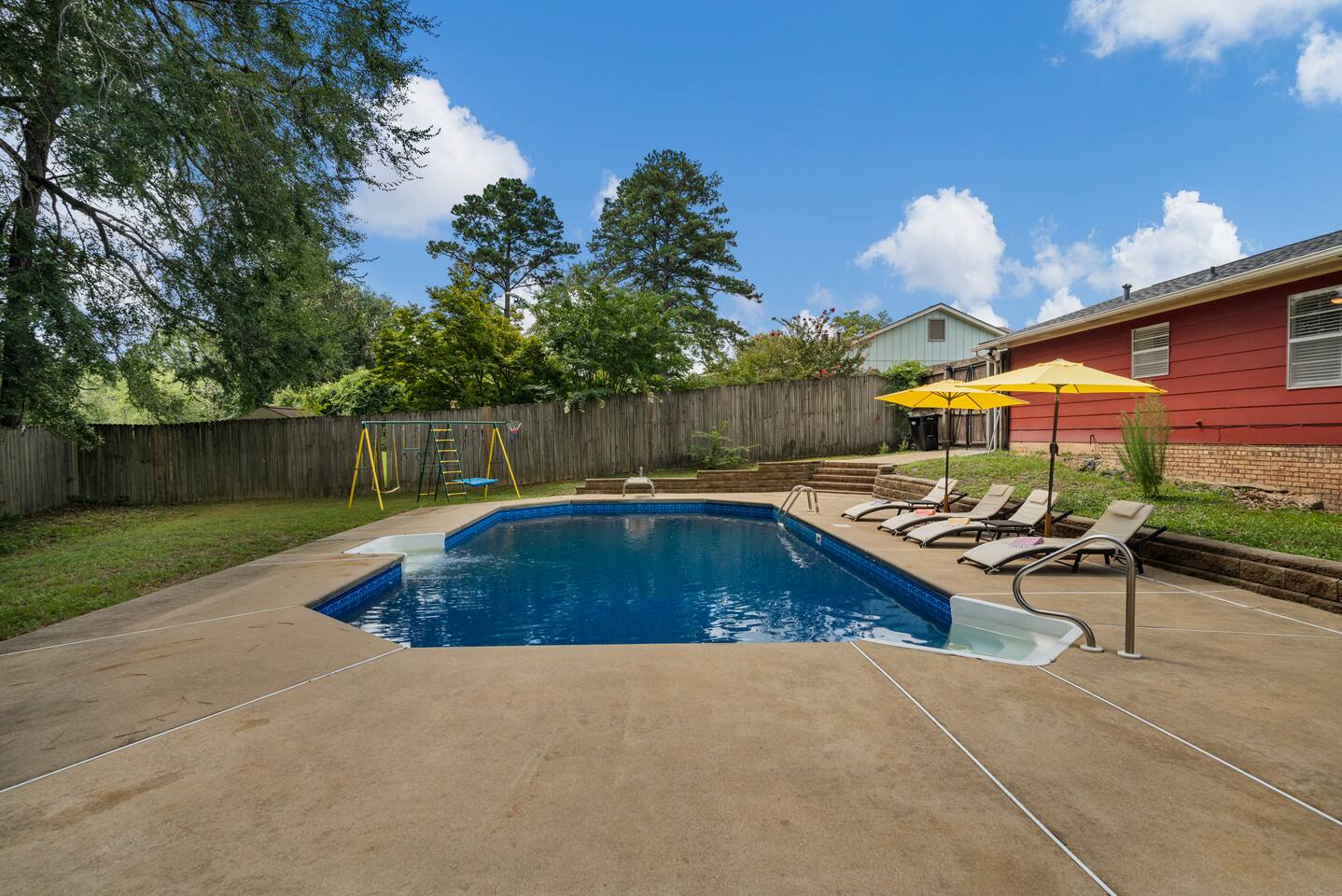 Relax to this 5BR, 2BA tri-level 1760 SQF retreat with a private pool, fenced yard, and playground perfect for families or groups to enjoy quality time together. Make use of a fully equipped kitchen, welcoming living areas, and ample space to unwind and gather. Just minutes from the city, this inviting retreat provides the perfect blend of comfort, entertainment, and convenience for your stay.