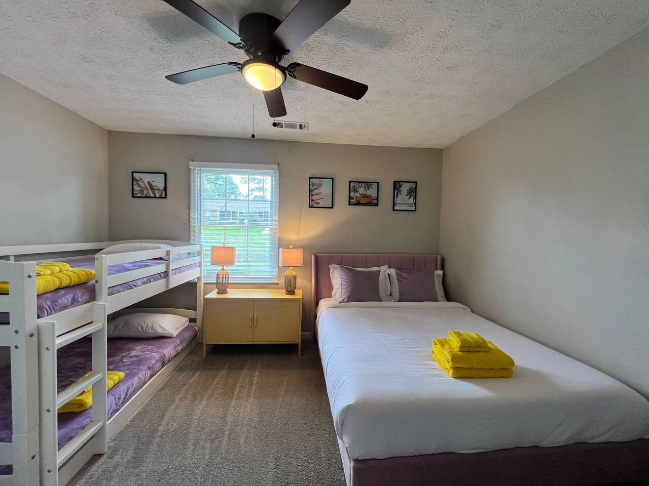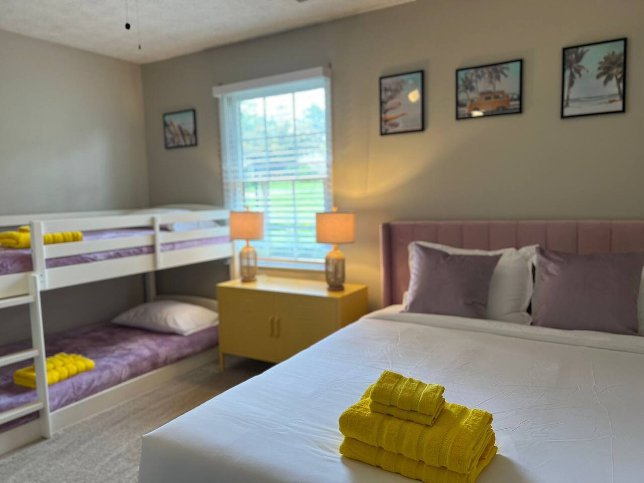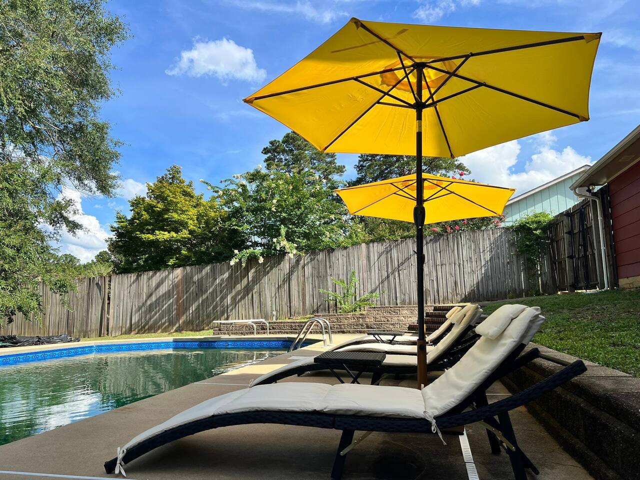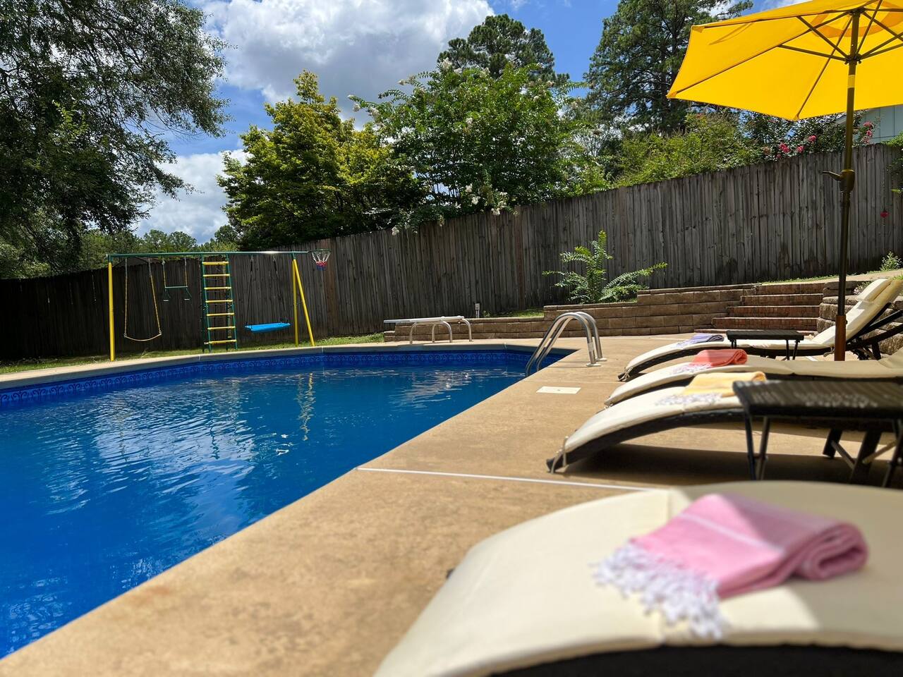 <b>Add The Yellow Hummingbird to your favorites!</b> Hit that ❤️ button in the upper right corner to easily find us and to share this getaway with your family and friends! Follow us, @abnb.hummingbirds, for more information on our graduation getaways! AMENITY HIGHLIGHTS: 💫 Dog-friendly, split level, 1778 sqft Luxury home 💫 1 Luxury King Bedroom + Dedicated Gameroom, Sleeps up to 16 guests. 💫 Gameroom with Arcade game, Giant Connect 4. 💫 Kids’ outdoor playset 💫 Huge fully fenced backyard 💫 Expansive Private pool 💫 Gas grill with Propane provided 💫 Outdoor dining 💫 Outdoor seating 💫 Fully equipped kitchen 💫 Coffee Bar with starter set of ground coffee, sugar, tea & hot choclate. 💫 50' TV in master suite and 65' in living room. 💫 Laundry room with washer and dryer with starter set <<b>The Yellow Humming Bird</b> in North Columbus combines the serenity of suburban living with the convenience of urban amenities, making it an ideal choice for travelers seeking a comfortable and accessible stay. This prime location is ideal for military families attending <b>Fort Benning graduations</b> and thrill-seekers looking to enjoy white water rafting on the Chattahoochee River. <b>Highlighted features of Yellow Humming Bird:</b> → <b>Central Location</b>:The vibrant Uptown Columbus area is just a 15-minute drive away, offering a variety of restaurants, boutiques, and entertainment venues. → Peaceful setting <b>near the U.S. Army's prominent Fort Benning base</b> → Expansive Pool, Wi-Fi, washer & dryer, and a 65” SmartTV for all your needs <b>The kitchen is a chef's dream, equipped with:</b> → Stainless steel appliances and every cooking essential → Blender for smoothies or mixed drinks → An array of glassware, wine glasses, and opener for evening celebrations → Krups coffee maker <b>Entertainment and leisure at its best:</b> → Huge Pool perfect for relaxation and recreation. →Engaging game room with games and arcade. → Wide backyard with playground—perfect for family fun → Outdoor BBQ. <b>Sleeping arrangements are tailored for comfort and convenience:</b> → Bedroom #1 : A king bed in the master suite with an en-suite bathroom for privacy → Bedroom #2: Queen bed offering another cozy queen bed → Bedroom #3: A single queen bed for a restful night's sleep → Bedroom #4: Double Queen room & trundle sofa bed that can sleep 6. → Bedroom #5: A single queen & bunk that can sleep 4 The Yellow Humming Bird stands out as one of the few spacious homes in Columbus, providing ample room, numerous amenities, and a perfect mix of tranquility and nearby attractions for an unforgettable stay. <b>Living Area</b>: Serene Retreat with Modern Comforts Step into a living space where contemporary design meets comfort. A modern color palette with bright tones set the stage for relaxation, complemented by soft seating and a smart 65" HDTV for your entertainment. Modernwooden style and natural light enhance the ambiance, creating a perfect setting for family memories or serene moments alone. <b>Sleek Gourmet Kitchen</b> Meets Family-Friendly Dining Embrace the heart of the home in our fully-equipped kitchen, a blend of functionality and sleek design. Stainless steel appliances inspire culinary adventures, while the open layout encourages social cooking and easy conversation. The open-concept dining area, where the stylish, modern table awaits family feasts, casual brunches, or an evening of board games. The dining area, set between the kitchen and livingroom offers a a whole family experience. <b>Bathrooms</b> The house boasts 2 convenient bathrooms: a hall guest bathroom and private spa-like master en-suite. Each features modern amenities and batural designs for a refreshing or relaxing experience. <b>The Yellow Humming Bird is not just a place to stay; it's your gateway to exploration and relaxation</b>. With its proximity to the thrilling white-water rapids of the Chattahoochee River, Flat Rock Park, known for its scenic trails and picnic areas, offering opportunities for outdoor activities, the historic significance of Fort Benning, and the vibrant downtown Columbus area, there's something for everyone to enjoy. After a day of adventure or cultural immersion, our home offers the perfect serene retreat to unwind. We're committed to making your visit memorable and look forward to welcoming you to discover all that our area has to offer.