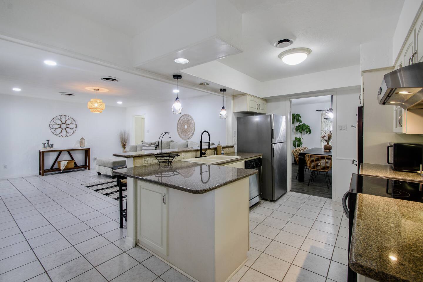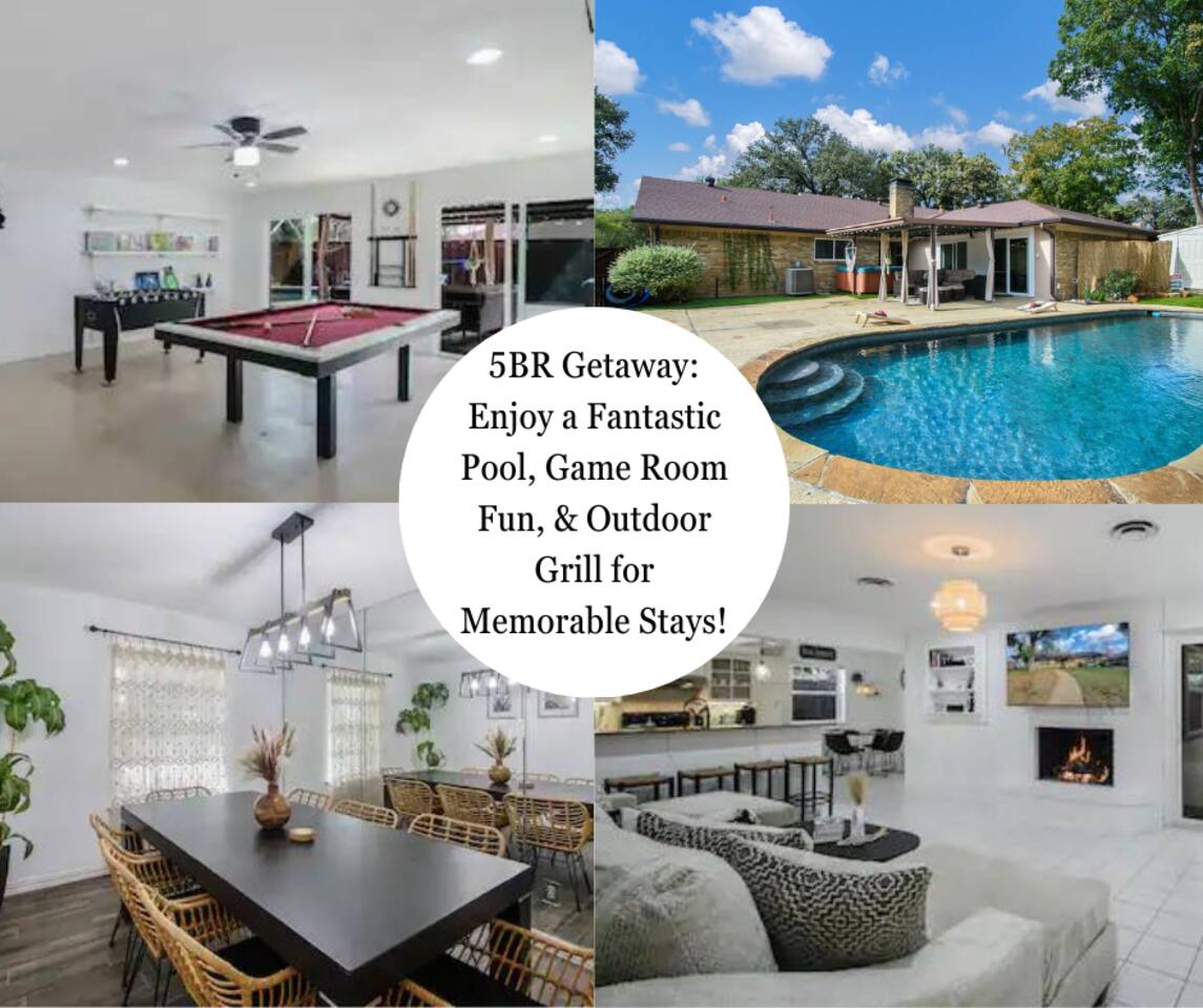 Stay in this spacious 5BR designer home in Irving, perfect for families, groups, and business travelers. Enjoy 2,500 sq ft of comfort, a private pool, covered patio, and a fully equipped chef’s kitchen. Inside, enjoy a turnkey experience with 4K Smart TVs, and high-speed Wi-Fi for remote work. Located in a quiet neighborhood 10 mins to DFW Airport, near Las Colinas, Irving Mall, and Baylor Scott & White Medical Center, making it ideal for vacations, corporate stays, and medical visits.