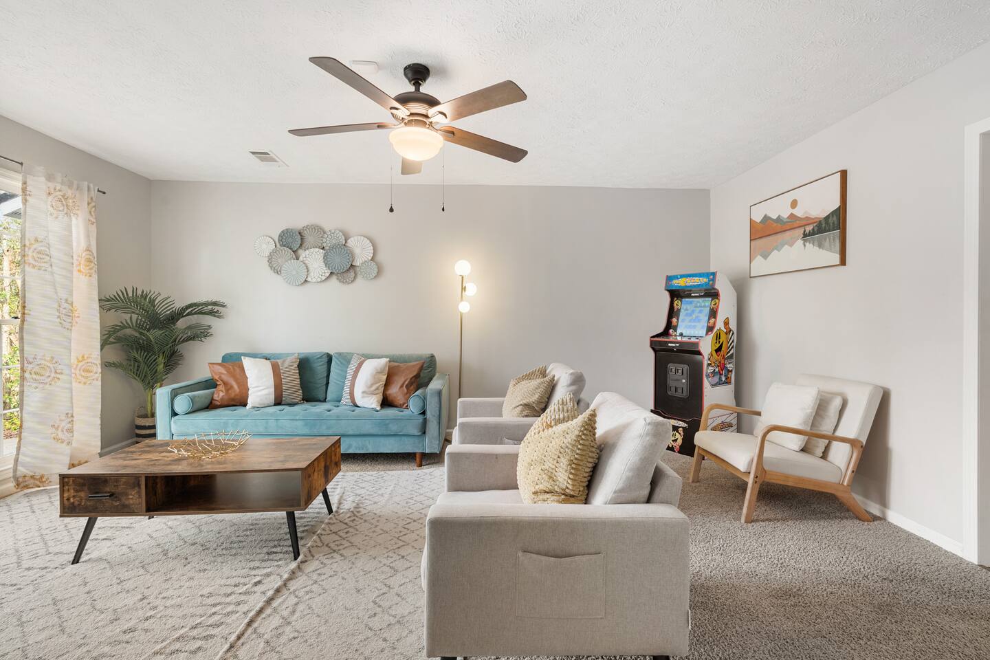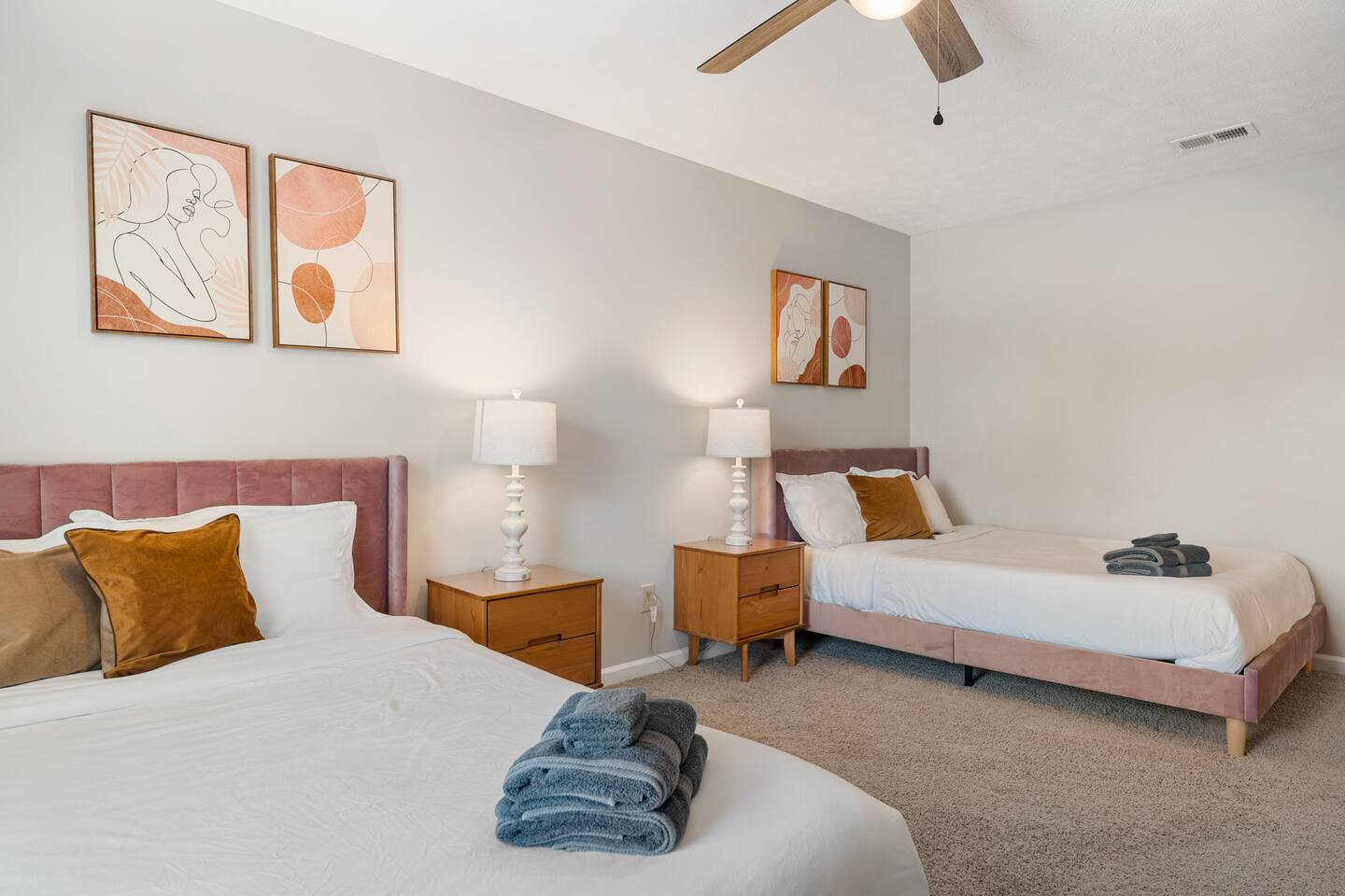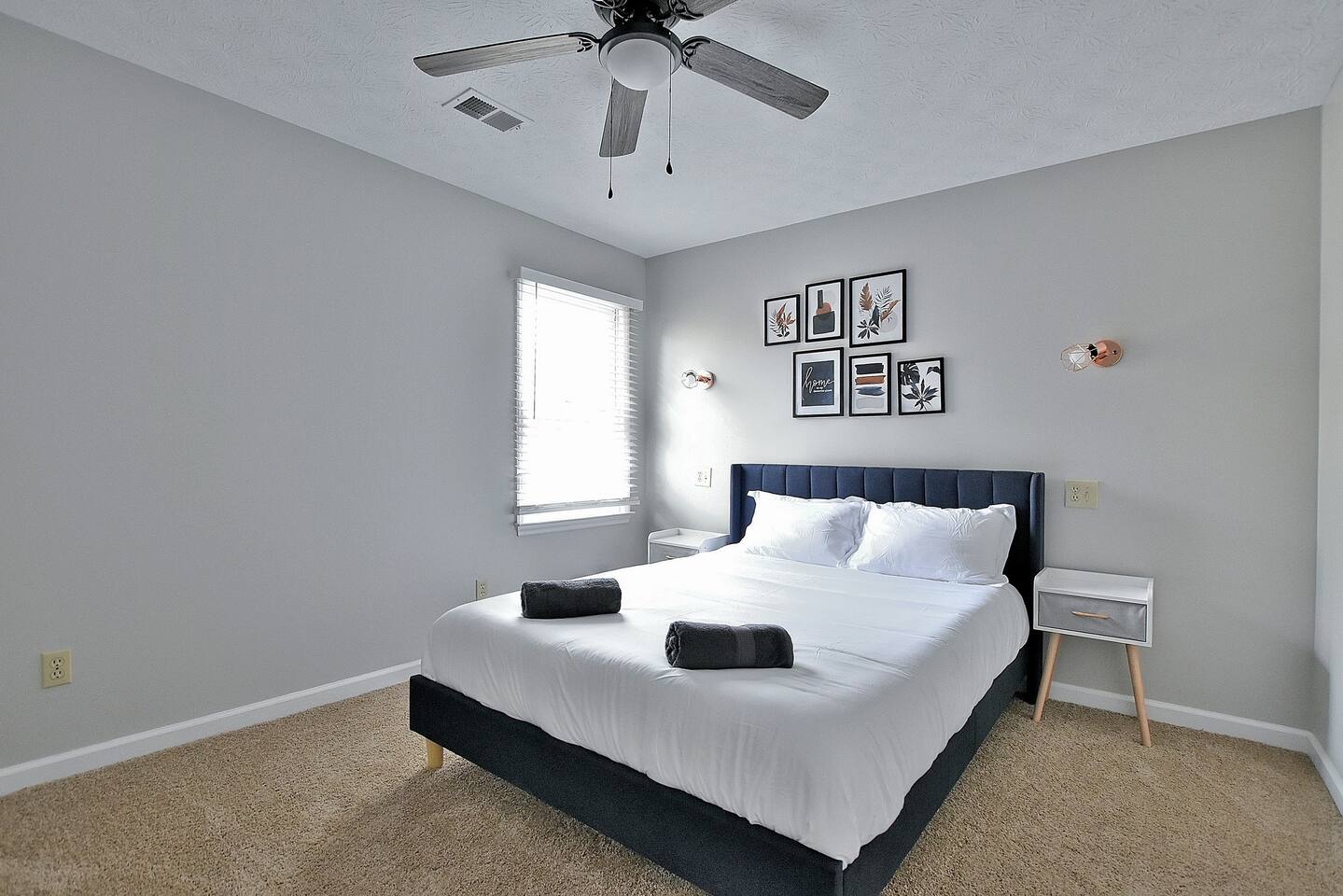 Click the ❤️ save Button in the top-right corner to easily find us again before your dates are booked. Welcome to The <b>Blue Hummingbird<b/>, a cozy 5BR& 3 BA retreat in North Columbus. Relax in stylish bedrooms, cook in a fully equipped kitchen, and enjoy fun-filled game nights in this large retreat designed for families or friends, Step outside to the private backyard featuring a relaxing hot tub and BBQ. This home blends comfort, style, and connection for your unforgettable stay.