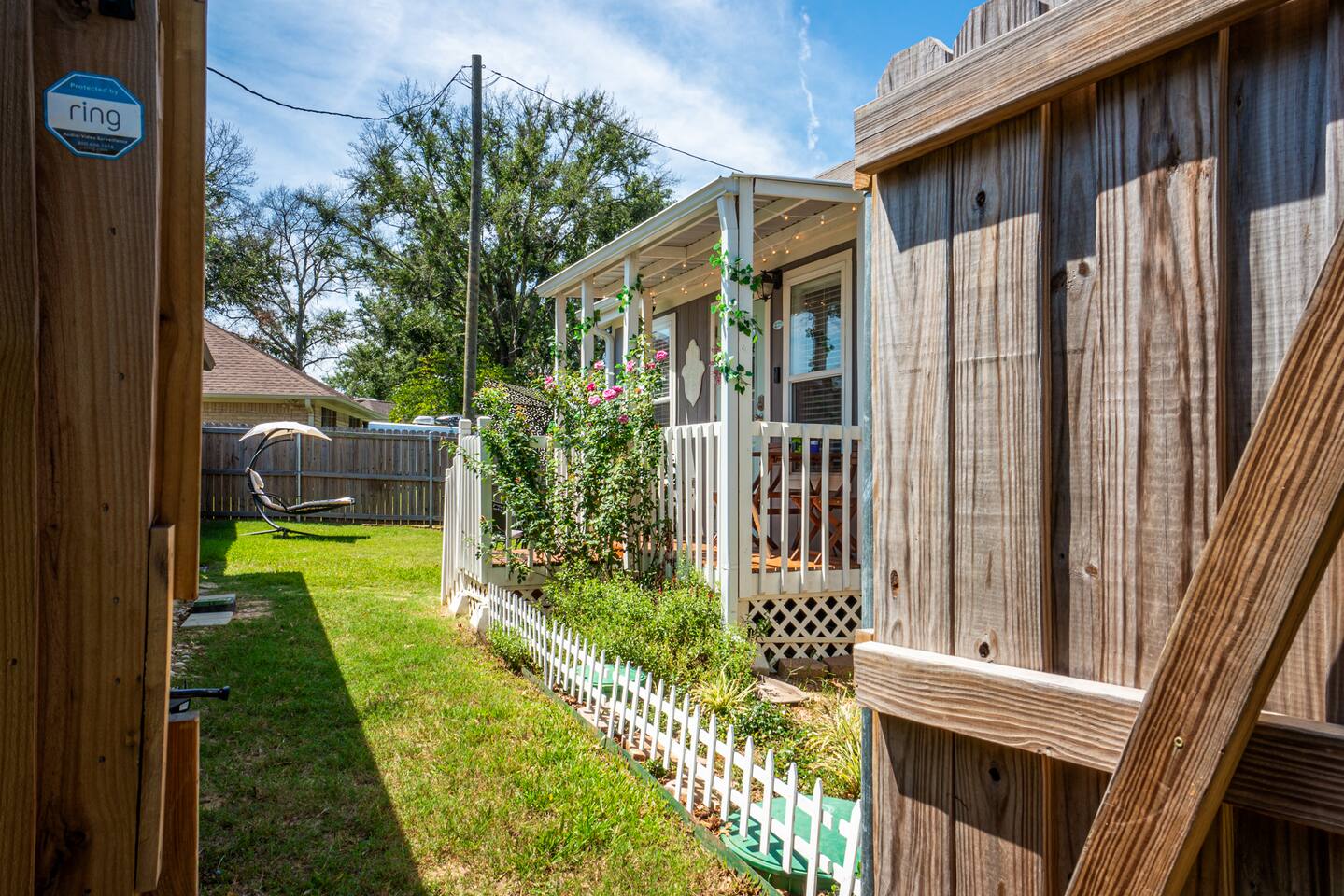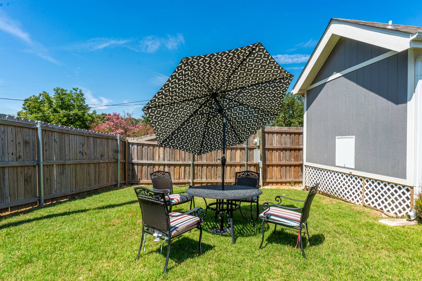 What Awaits You: • Fully equipped kitchen for cooking up your favorites • Comfortable queen-sized bed and sleeper sofa for extra guests • Modern amenities: Washer & dryer, full bath, and high-speed Wi-Fi • Fully fenced private backyard retreat with a cozy fire pit • Gorgeous covered patio, perfect for enjoying your morning coffee or unwinding at sunset - Air conditioning - Bathtub - Bed linens - Carbon monoxide alarm - Clothing storage - Coffee maker - Cooking basics (Pots and pans) - Dedicated workspace - Dining table - Dishes and silverware - Dryer - Essentials (towels, bed sheets, soap, and toilet paper) - Free street parking - Hair dryer - Heating - Hot water - Hot water kettle - Iron - Microwave - Outdoor dining area - Outdoor furniture - Oven - Separate street or building entrance - Refrigerator - Smoke alarm - Stove - Trash compactor - TV - Wifi