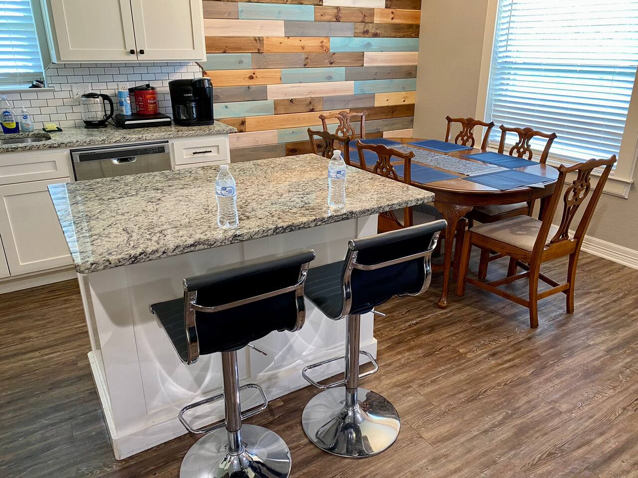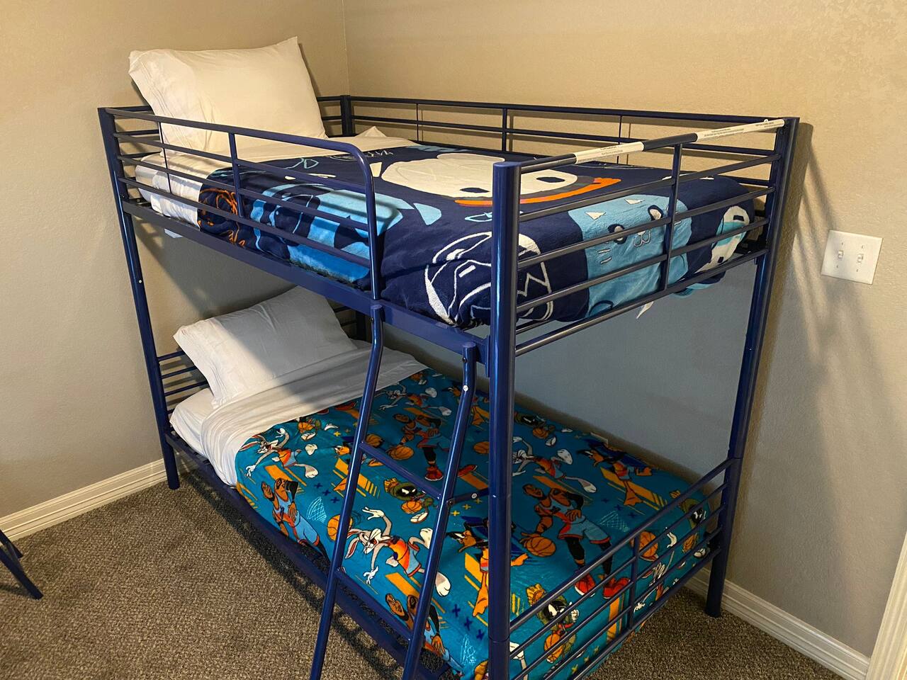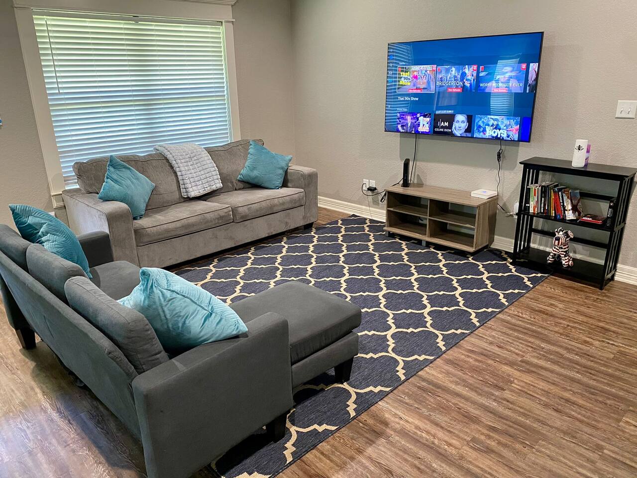 Welcome to our cozy retreat nestled in a quiet neighborhood, Enjoy the serenity of your surroundings while lounging in our spacious backyard, perfect for relaxation or outdoor activities. Every detail is crafted for quality time with family and friends! Relax on the inviting patio, furnished for starlit conversations and peaceful moments. Inside, sink into the plush couches of the living room, where a TV awaits for movie marathons and game nights. Experience stunning entertainment with our 65-inch Samsung TV, offering access to over 100 channels through Samsung TV Channels. Explore our three charming bedrooms: a king-size bed in the master suite, a cozy queen-size bed in the second room, and playful bunk beds in the third, perfect for little ones' adventures. Gather around the dining table, surrounded by six chairs, and bathed in natural light from nearby windows. The fully-equipped kitchen stands ready for your culinary creations. We offer the installation of a water softener system that provides benefits for both skin and hair, ensuring a softer and healthier feel. Additionally, we provide clean water filtration systems that guarantee safe drinking water for you and your family. Here, amidst laughter and shared meals, forge memories to cherish forever. Welcome to your perfect home away from home!