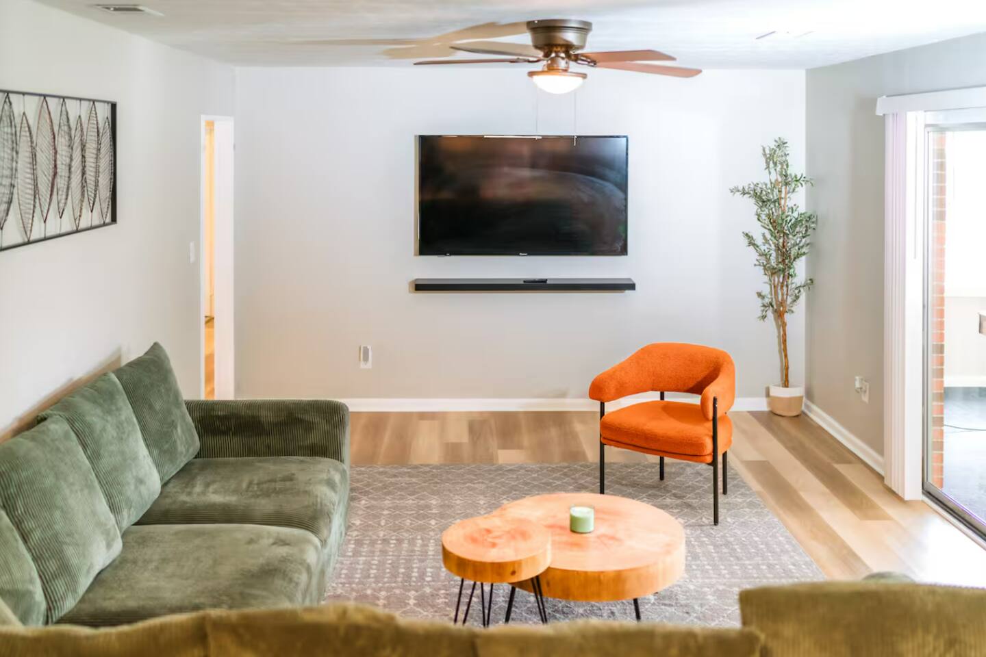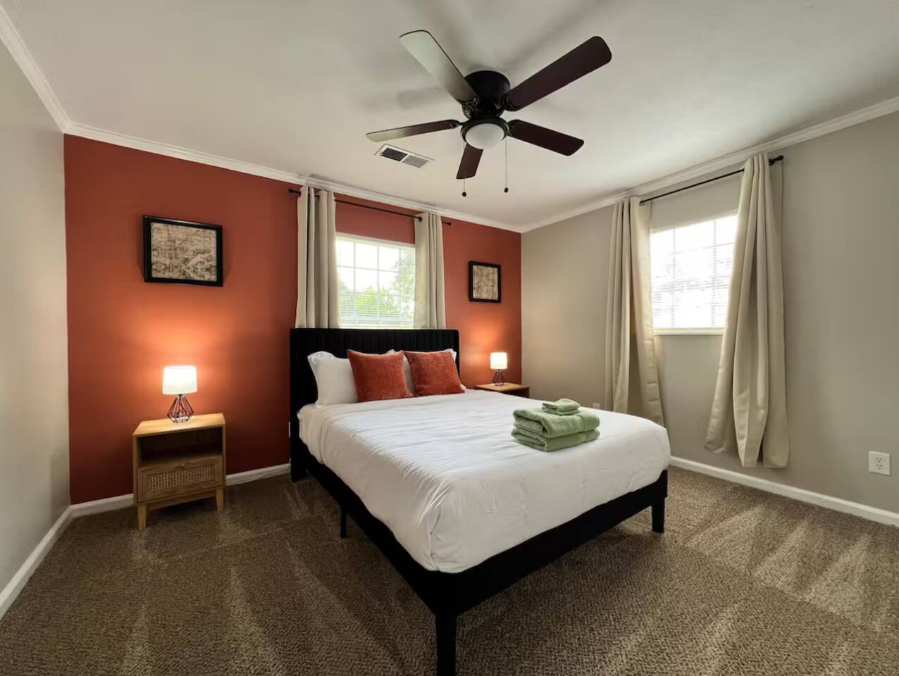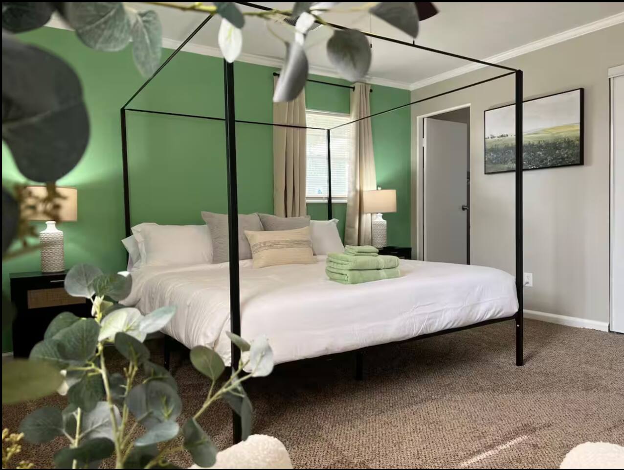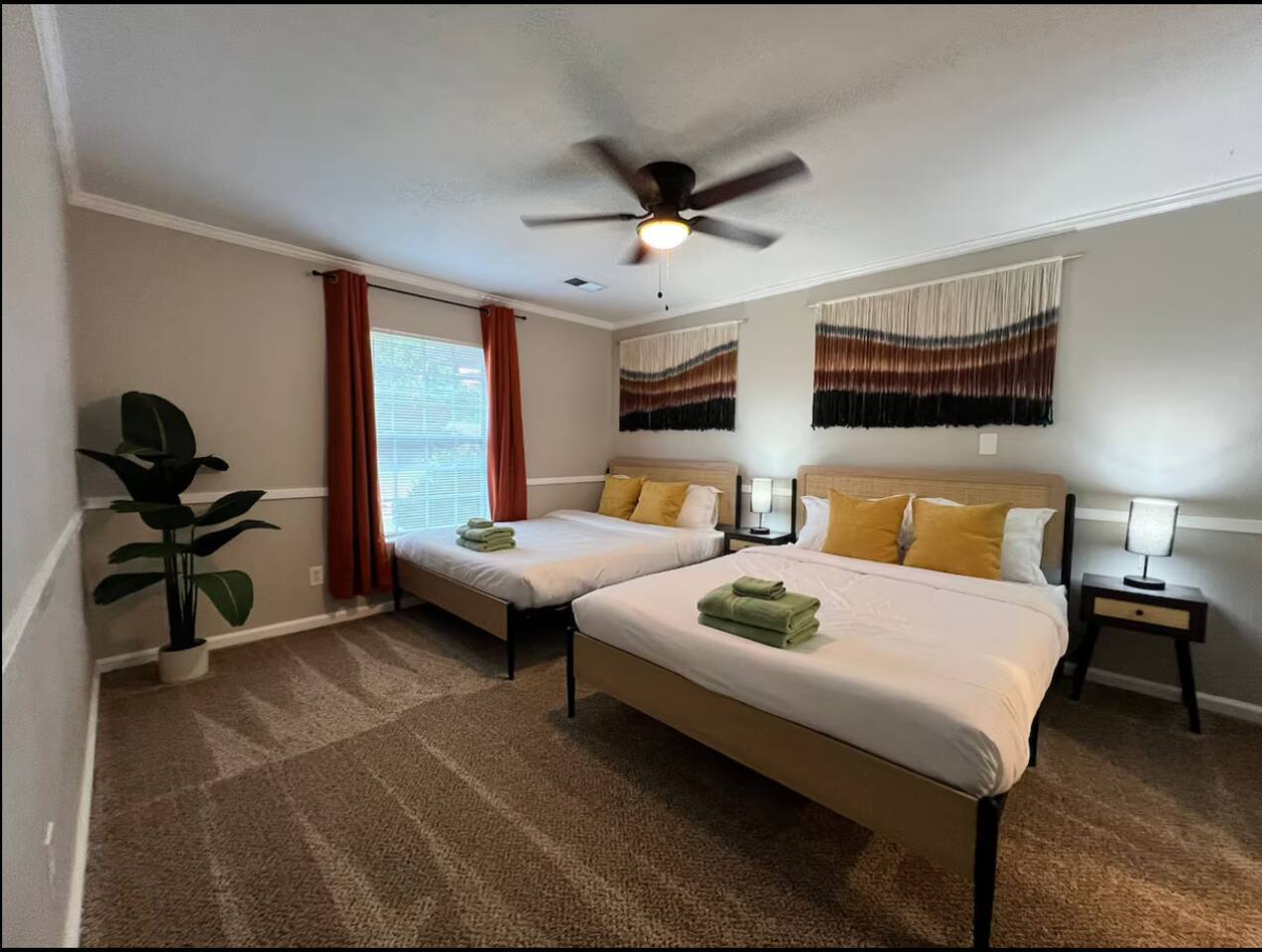 This tranquil stylish home includes a huge backyard with a <b>children's playset, BBQ area, and engaging game room with arcade and pool table.</b> The Green Humming Bird stands out as one of the few spacious homes in Columbus, providing ample room, numerous amenities, and a perfect mix of tranquility and nearby attractions for an unforgettable stay. 💎 <b>Highlighted features of Green Humming Bird: </b> → <b>Central Location: .</b> Minutes from shop and dining, the army base, the convention center, and much more. → <b>Peaceful setting</b> near the U.S. Army's prominent Fort Benning base. → Wi-Fi, washer & dryer, and a 65” SmartTV for all your needs. 👨🏻🍳 The kitchen is a chef's dream, equipped with: ✔️ Appliances: stove, oven, refrigerator, microwave, and dishwasher. ✔️ Cookware, pots, and pans. ✔️ Dishes, glassware, and utensils for for evening celebrations. ✔️ Krups coffee maker (12-cup carafe) with complimentary ground coffee (and hot chocolate!). ✔️ Tea kettle with a complimentary assortment of tea. ✔️ Blender for smoothies or mixed drinks, toaster, and basic pantry essentials. 🎯 Entertainment and leisure at its best: <b>Endless Fun and Relaxation Haven </b> ✔️ Engaging game room with Pool table and arcade game. Discover the ultimate leisure space in our sunroom, designed for endless entertainment and relaxation. Whether you're in the mood for a competitive Pool game, arcade match or a tranquil moment looking out to the huge green backyard, this room provides a versatile setting for guests of all ages. Surrounded by panoramic windows that offer serene views of the outdoors, the game room serves as a bright and airy escape. 🏡 <b>Sleeping arrangements are tailored for comfort and convenience:</b> → Bedroom #1: A king bed in the master suite with an en-suite bathroom for privacy. → Bedroom #2: Queen bed offering another cozy queen bed. → Bedroom #3: A single queen bed for a restful night's sleep. → Bedroom #4:Another Double Queen room off the Kitchen area. 🛀🏻 <b>Bathrooms:</b> The house boasts 2 convenient bathrooms: a hall guest bathroom and a private spa-like master en-suite. Each features modern amenities and natural designs for a refreshing or relaxing experience. 📺 Living Area: <b>Serene Retreat with Modern Comforts</b> Step into a living space where contemporary design meets comfort. A calming color palette with natural tones sets the stage for relaxation, complemented by soft corduroy seating and a smart 65" HDTV for your entertainment. Warm wooden style and natural light enhance the ambiance, creating a perfect setting for family memories or serene moments alone. 🌳 Backyard & BBQ: <b>Nature's Playground and Grilling Paradise.</b> ✔️ Wide backyard with playground—perfect for family fun ✔️ Outdoor BBQ. Escape to the expansive backyard where laughter and joy resonate through the air. Here, a vibrant playset awaits the energetic spirits of children, offering hours of amusement amidst the gentle whispers of nature. This private outdoor haven is an idyllic spot for guests to enjoy the simpler pleasures—whether it's a round of tag on the grass or a serene afternoon on the swings. As the sun sets, gather around the BBQ grill for an evening of grilling, where every meal is infused with the essence of the outdoors. <b>We're committed to making your visit memorable and look forward to welcoming you to discover all that our area has to offer.</b>