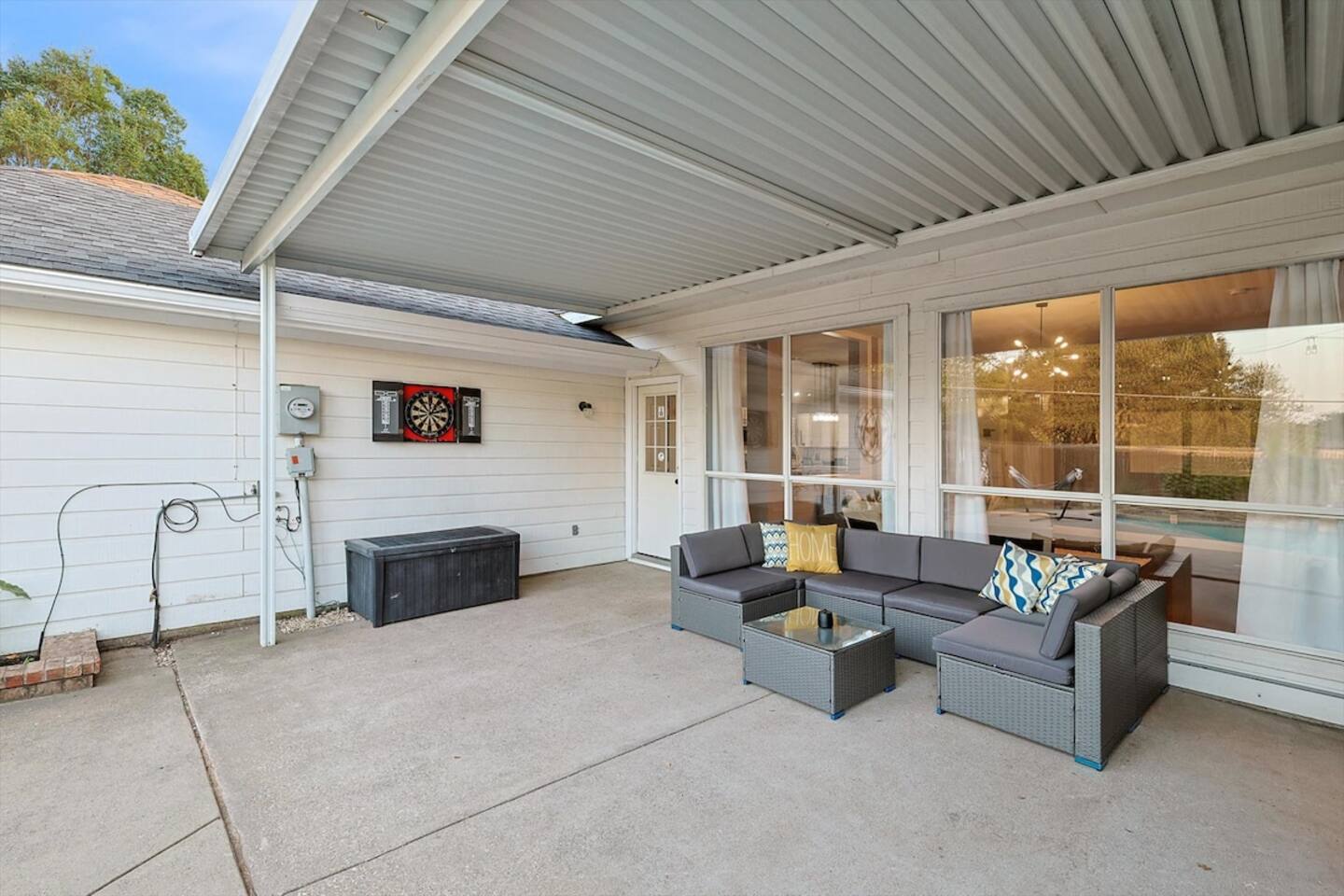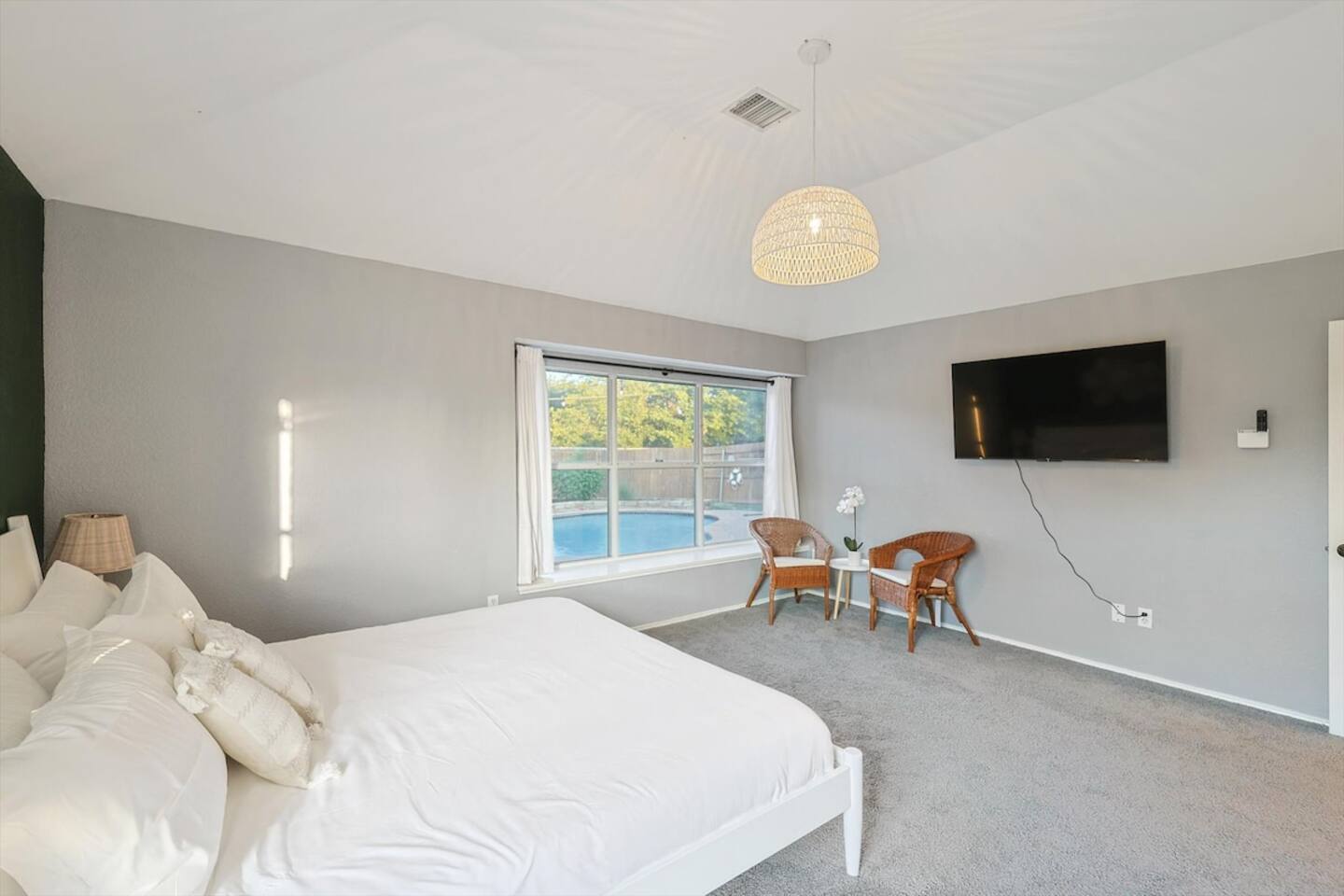 - Pet-Friendly: House-trained pets are welcome with a $150 fee per pet. Register your pets and clean up after them, especially in the backyard. - No Parties/Large Gatherings: Only registered guests are allowed. Contact us if you have queries or need clarification before booking. - Additional Fees: From the seventh guest onwards, a $39 fee per guest per night applies. The fifth bedroom opens for groups of 8+ guests. - Entertainment: Smart TVs with streaming apps are available. We'll sign out of your accounts if you forget to do so. - No Indoor Smoking: A $500 fine applies for violations. Smoke outdoors and dispose of cigarette butts properly. - Pool and Hot Tub: Please note that the pool and hot tub are professionally serviced twice a week during the summer months and once a week during the rest of the year. As this is an outdoor pool, it’s normal for some leaves or debris to appear between cleanings. This does not indicate the pool is unclean—rest assured, all necessary chemicals are properly balanced, and the filtration systems are regularly maintained for your safety and comfort. The pool technician accesses the area through the backyard gate. POOL IS NOT HEATED - Landscaping: Is done once a week. - Security Cameras: Two cameras are installed outside for security, none inside. - House Rule Violations: Can result in reservation cancellation, no refunds, and loss of deposit. - Pest Control: Pest control service is monthly. Contact us if you encounter bugs. - Other: High-speed wifi is available; no cable.