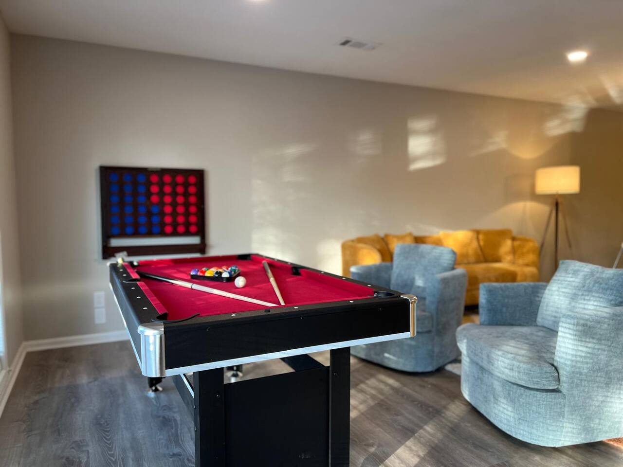 The Orange Hummingbird is the perfect blend of comfort and convenience. It's is a unique, spacious home in Columbus, offering exceptional amenities and a perfect balance of peace and proximity to local attractions for a memorable stay. <b>WHY STAY WITH US?</b> → Situated about <b>10 miles from Fort Benning</b> making it a short drive for military families attending ceremonies or graduations. → Just <b> 5 miles from the Downtown Columbus</b> and </b>white water rafting</b> on the Chattahoochee River. → Spacious backyard with a Private pool, Kids swing playset, BBQ, and game room, Everyone has something to do. → Wi-Fi, washer & dryer, and a 65” SmartTV with Roku for all your needs <b>The kitchen is a chef's dream, equipped with:</b> → Stainless steel appliances, granite counters, and every cooking essential → Blender for smoothies or mixed drinks. → An array of glassware, wine glasses, and opener for evening celebrations. → Krups coffee maker. <b>Entertainment and leisure at its best:</b> → Engaging game room with <b>Pool Table</b> and games → Wide backyard with playground—perfect for family fun → Private Pool: Dive into relaxation in your own secluded oasis → Outdoor BBQ. <b>Sleeping arrangements are tailored for comfort and convenience:</b> → Bedroom #1 : A King bed in the master suite with an en-suite bathroom for privacy. → Bedroom #2: A single queen bed for a restful night's sleep. → Bedroom #3: Queen trundle bed with that can easily sleep 3 The Orange Humming Bird is one of the few large homes in Columbus, offering ample space, a host of amenities, and a perfect blend of tranquility and local attractions for a memorable stay. <b>Living Area</b>: Serene Retreat with Modern Comforts Experience the retro charm of the 70s in this vibrant, spacious living room designed for both style and comfort. With an abundance of plush seating, including cozy curved sofas and accent chairs, there's room for everyone to relax and enjoy. The warm mustard and burnt orange tones, paired with a bold area rug, create a nostalgic yet modern vibe and the 65" HD TV above the fireplace ensures top-notch entertainment. Perfect for large groups or family gatherings, this space is all about creating memories in comfort and style. <b>Sleek Gourmet Kitchen</b>: Discover a charming and functional kitchen that offers the perfect balance of connection and privacy. Located just steps away from the dining room, this slightly detached space provides a cozy retreat for culinary creations while keeping the dining area within easy reach. With modern appliances, generous counter space, and all the essentials, it’s ideal for preparing everything from quick breakfasts to elaborate dinners. Its thoughtful layout ensures you can enjoy the convenience of proximity while maintaining a quieter, focused cooking environment. <b>Dinning Area</b>: Gather together in this stylish dining room, located just behind the living room with the fireplace creating a cozy divider between the spaces. This inviting area features a large wooden table with seating for eight, perfect for family meals, game nights, or group gatherings. Modern touches like bold orange chairs, a minimalist chandelier, and playful wall art add charm and character. With its proximity to both the living room and kitchen, this dining space is the perfect hub for sharing meals and making memories. <b>Game Area</b>: Endless Fun and Relaxation Haven Get ready for fun and relaxation in the open-concept living and game area! Located within the same space as the cozy living room, and large windows offering a view of the sparkling private pool, this game zone features a vibrant pool table with a striking red felt top, perfect for friendly competitions or casual play. A wall-mounted Connect Four adds an extra layer of entertainment for guests of all ages. The seamless layout ensures everyone stays connected, whether lounging on plush seating or engaging in a game. This dynamic space is ideal for creating memories and keeping the good times rolling! <b>Backyard & BBQ:</b> Nature's Playground and Grilling Paradise Escape to the expansive backyard where laughter and joy resonate through the air. Here, a vibrant playset awaits the energetic spirits of children, offering hours of amusement amidst the gentle whispers of nature. This private outdoor haven, bordered by a lush tree line, is an idyllic spot for guests to enjoy the simpler pleasures—whether it's a round of tag on the grass or a serene afternoon on the swings. As the sun sets, gather around the BBQ grill for an evening of grilling, where every meal is infused with the essence of the outdoors.