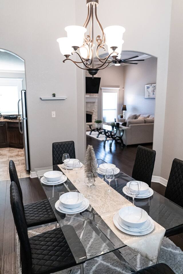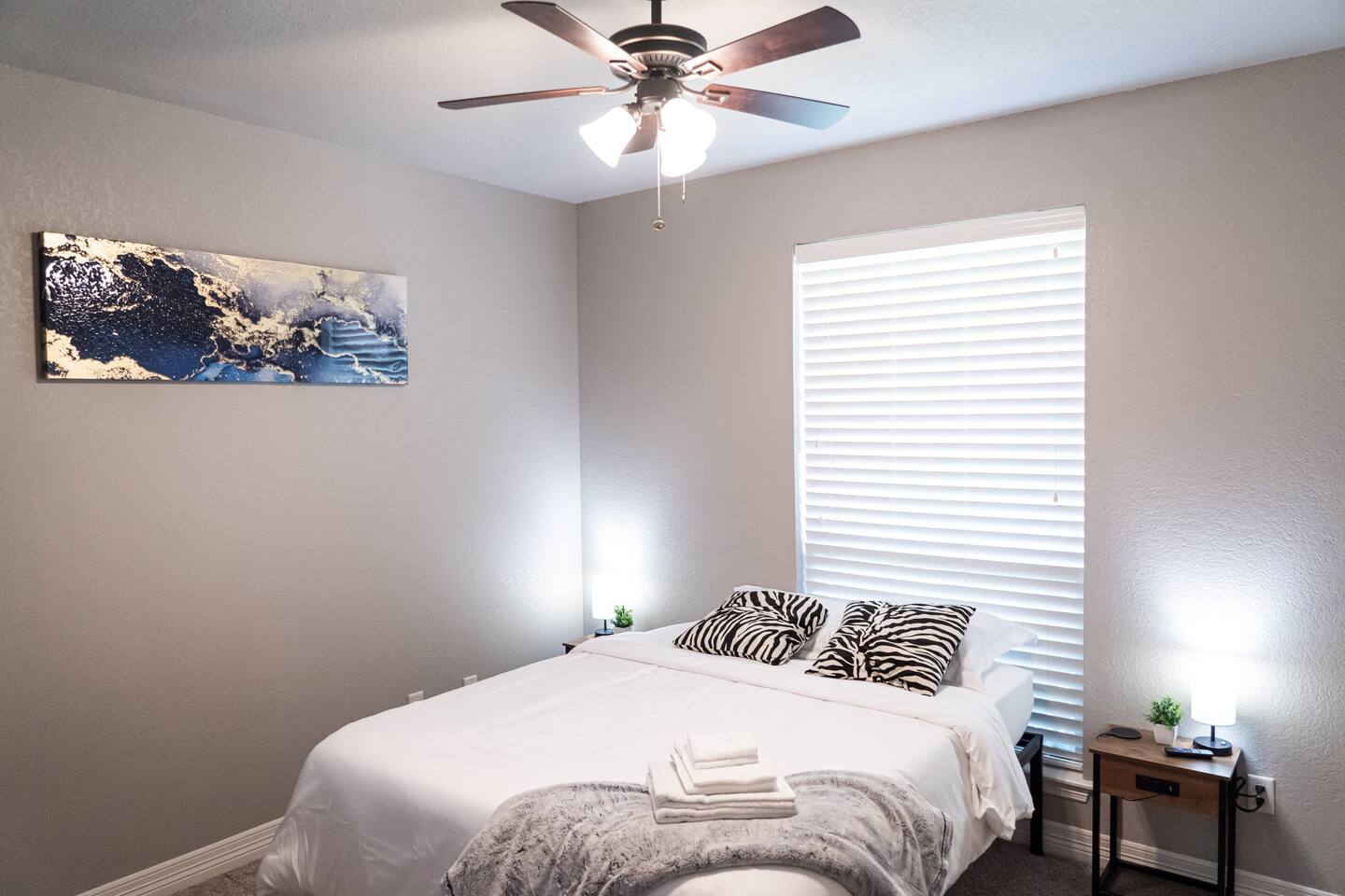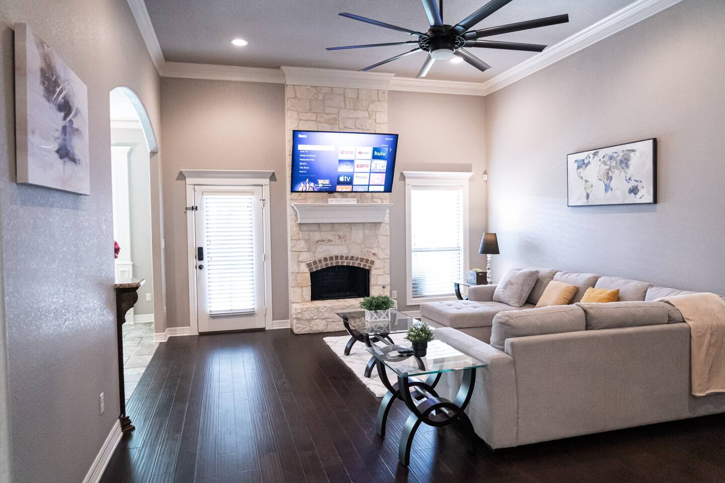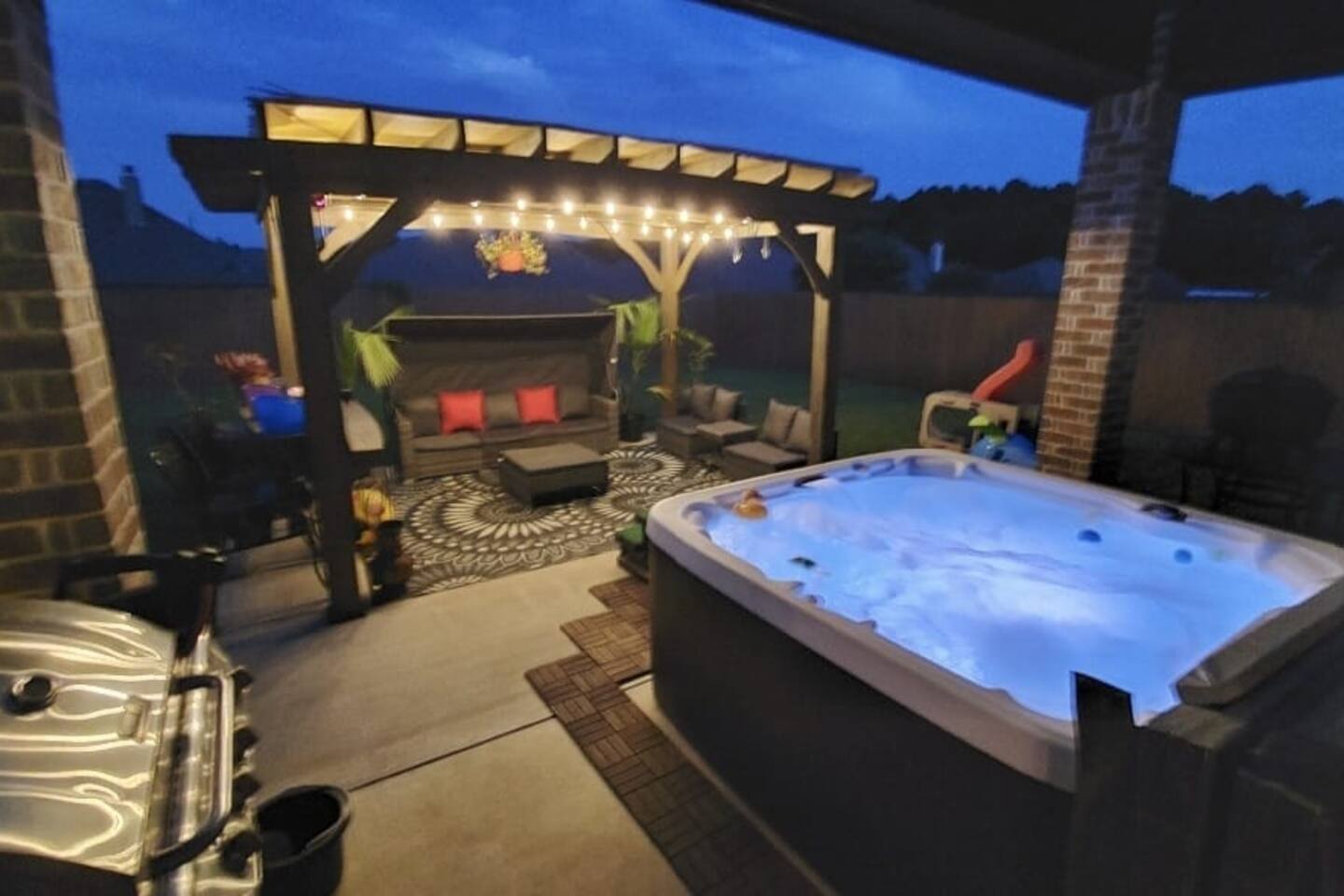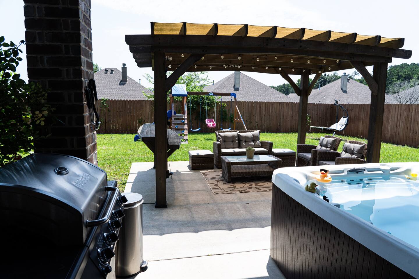 Relax in this stylish 3BR/2BA retreat, tucked away in a quiet and peaceful neighborhood. Cook with ease in the fully equipped kitchen, then step outside to a private backyard with a hot tub, fire pit, and pergola, perfect for cozy evenings. Perfect for families, children, and groups, the home also features a playful area that everyone will enjoy. Whether with loved ones or on a peaceful escape, this retreat offers comfort, style, and lasting memories.